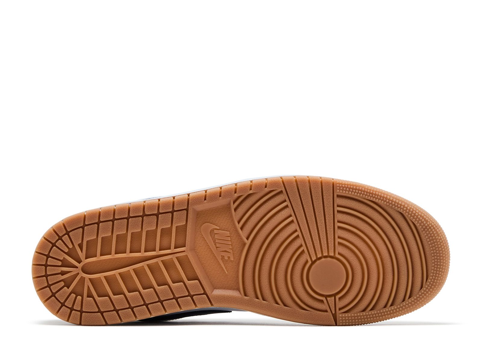 The Air Jordan 1 Low 'Georgetown' uses the colors of the Hoyas, starting with a white leather upper touched with light grey suede overlays. A navy Swoosh matches the Jumpman logo on the tongue and the Wings emblem on the heel. These shoes have a classic foam midsole coupled with white sidewalls and a gum rubber outsole.